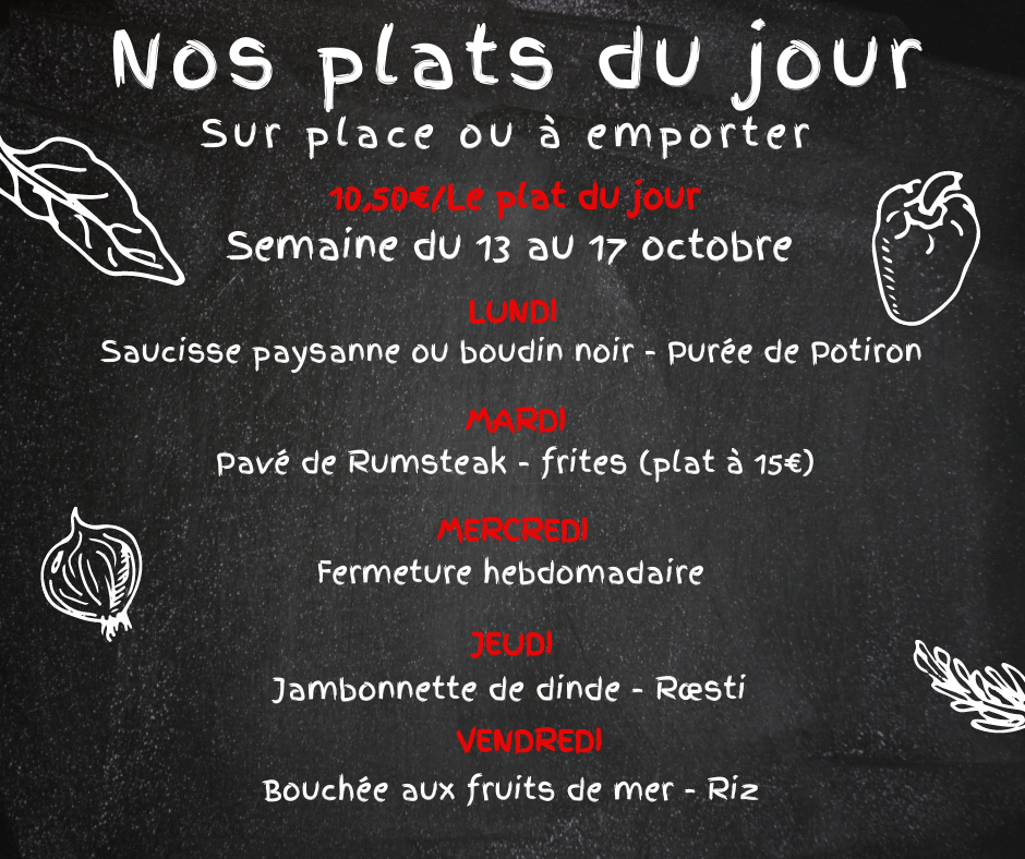 Plats du jours du lundi au vendredi midi